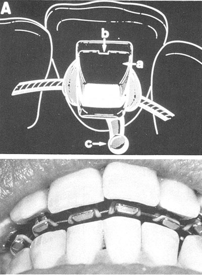 During 1979 and 1980, a number of modifications were made. With difficulties in maintaining control of the posterior segments and the encroachment of the second molar tube on tongue space, it was decided to produce a terminal tube for the first molars and to treat the posterior segments with conventional buccal segmental mechanics. Lingual brackets were placed on bi-cuspids when possible, and the lingual archwire was terminated at the first molars.