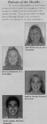 "A major portion of our newsletter is comprised of the 'Faces 'n Braces' column," Dr. Turpin said (Fig. 1). "This news section includes the names of nearly 100 past and present patients who, for one reason or another, deserve attention. Everyone in the office is challenged to find out what our patients are doing at home, school, or work that is special. This bit of information is written down on a piece of note paper and saved until we're ready to write the column. It is the most widely read section of the newsletter."