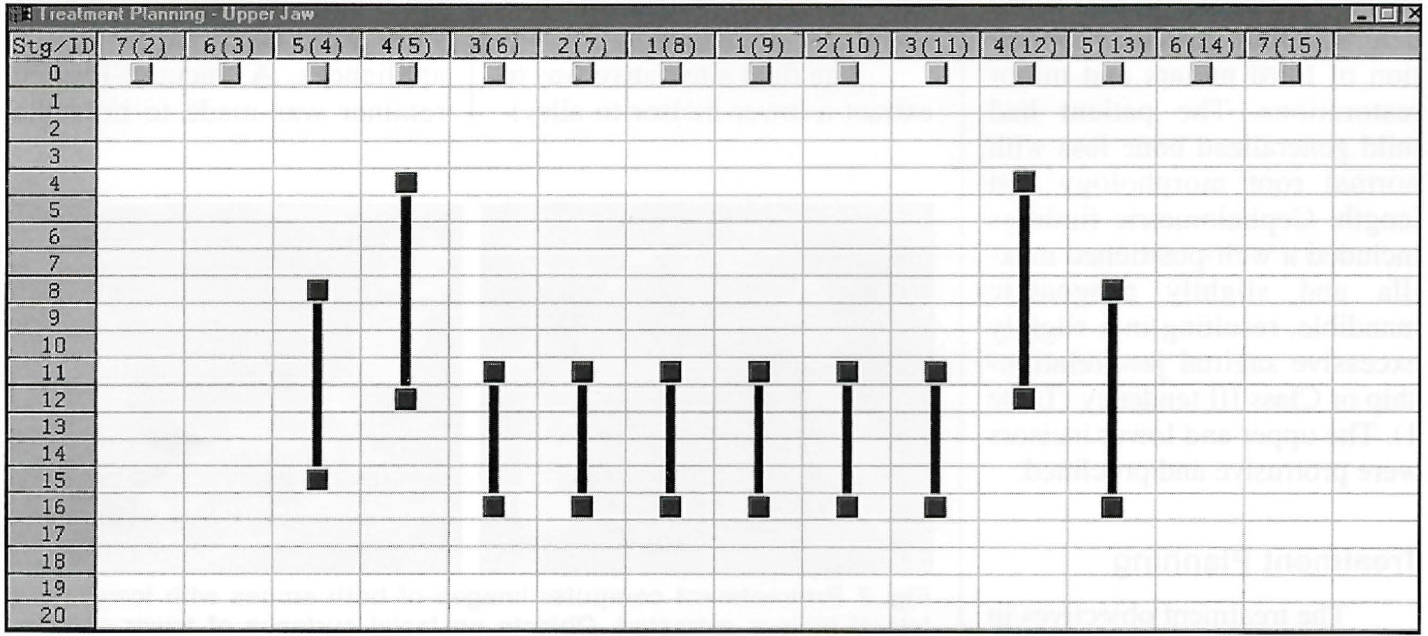 Fig. 4 Schematic representation of planned maxillary tooth movements. Each column represents one tooth; each row represents an aligner stage.