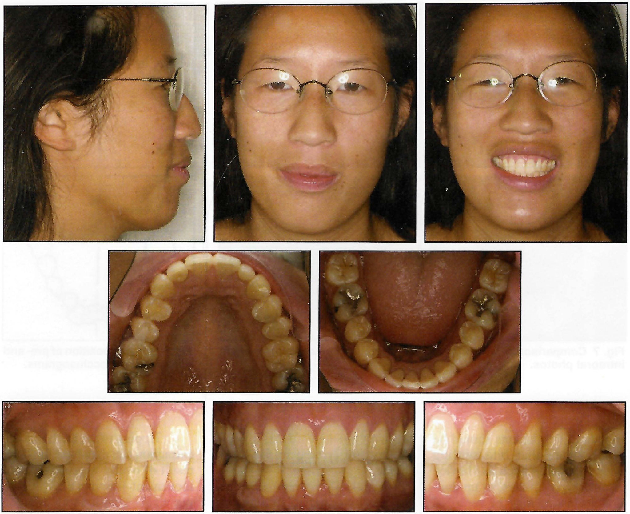 Post-treatment facial photographs showed little change in facial profile (Figs. 6A, 6B).