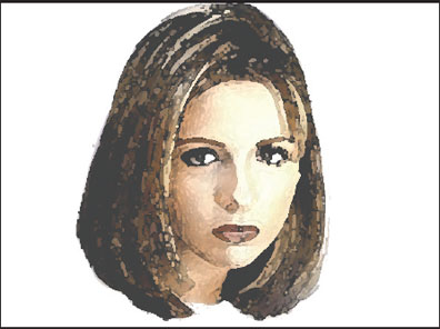 Fig. 1 Females who have more convex, shorter lower faces and protrusive lips, and who generally appear more immature, are considered more attractive than sex-corrected averages. Actress Sarah Michelle Geller demonstrates this type of feminine-accentuated face in computer drawing made from photograph.