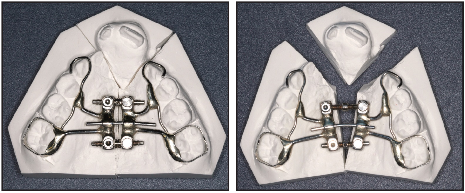 The shape of the maxillary arch in children with CLP can vary with the extent and size of the cleft defect and the technique used to repair the lip and palate, since a cleft segment tends to collapse into the void of the cleft. The goal of maxillary expansion in these cases is to coordinate the archform before an alveolar bone graft is performed. When conventional RME is used in a patient with complete CLP, the anterior and posterior segments of the arch will expand simultaneously, risking overexpansion of the intermolar distance in an effort to correct the intercanine distance. This can result in a buccal crossbite, which can produce undesirable long-term periodontal consequences such as buccal bone dehiscences and gingival recessions.12,13