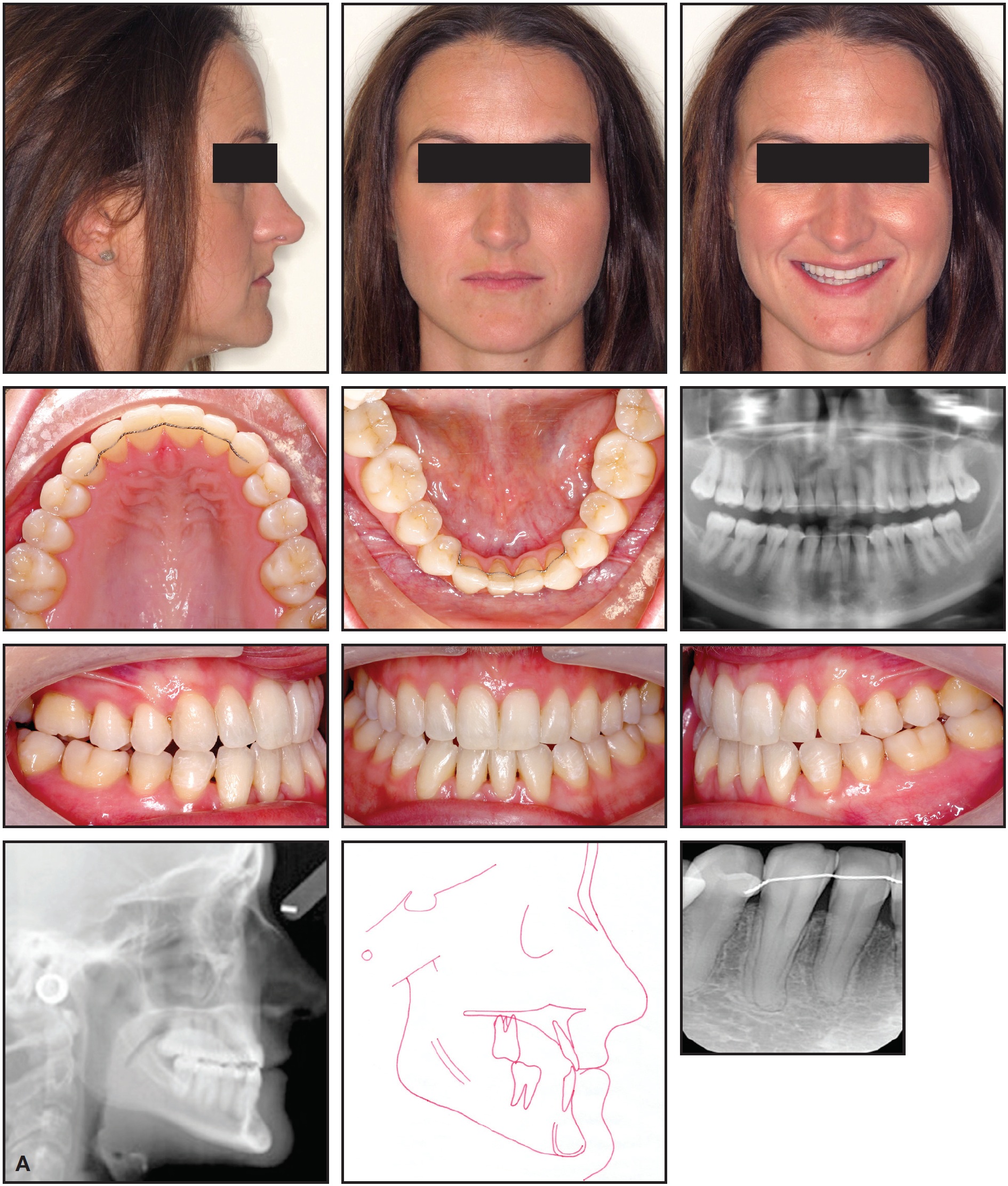 A good esthetic result was achieved after closure of the lower-incisor extraction space. The panoramic radiograph confirmed bodily tooth movement, with the roots of the remaining lower incisors almost completely parallel. A periapical radiograph showed no apical pathology of the lower right lateral incisor, as was suggested by the panoramic x-ray.
