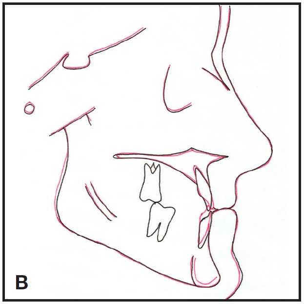 Fig. 6 (cont.) Case 1. B. Superimposition of cephalometric tracings.