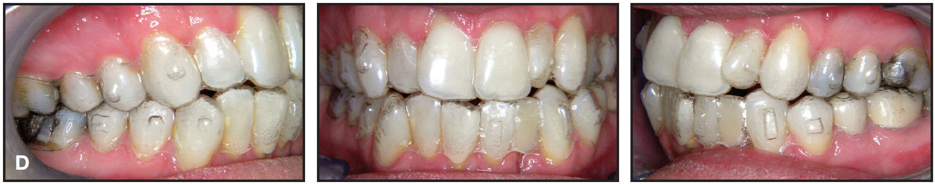 Fig. 8 (cont.) Case 2. D. Initial aligners with bonded attachments and PVS pontic.