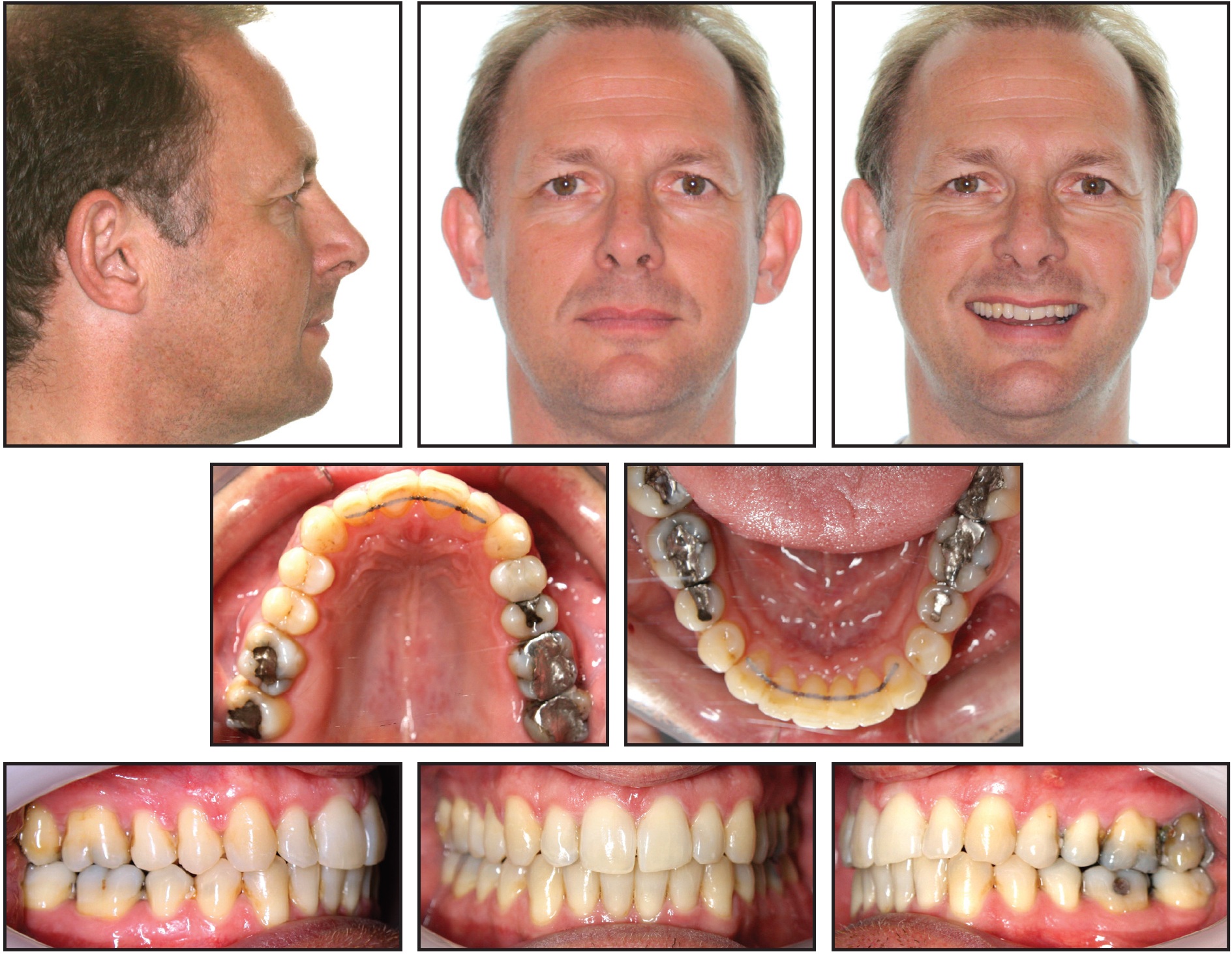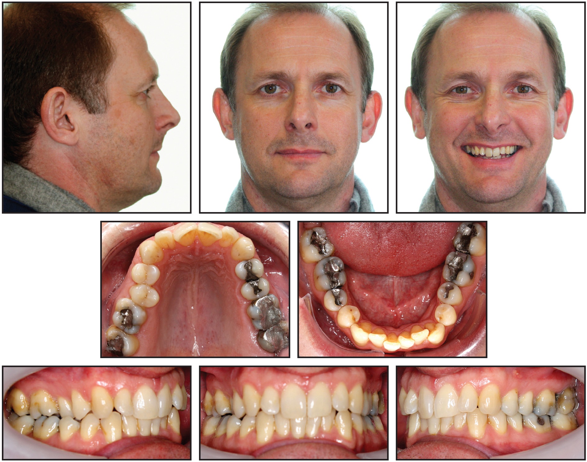 Fig. 14 Case 4. 45-year-old male patient with bimaxillary retroclination, upper right premolar in crossbite, and moderate upper and lower crowding before treatment. Estimated treatment time: 18-24 months.