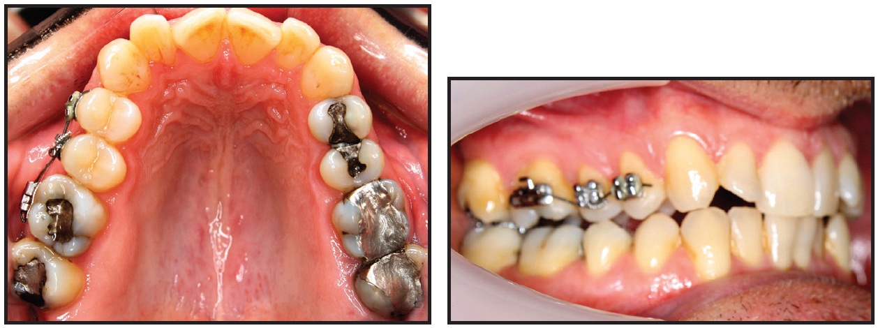 Estimated treatment time was 18 months without PF. The patient chose to use AcceleDent, and nonextraction treatment was planned. Class II elastics were worn to correct the buccal relationship on the right side (Fig. 7).