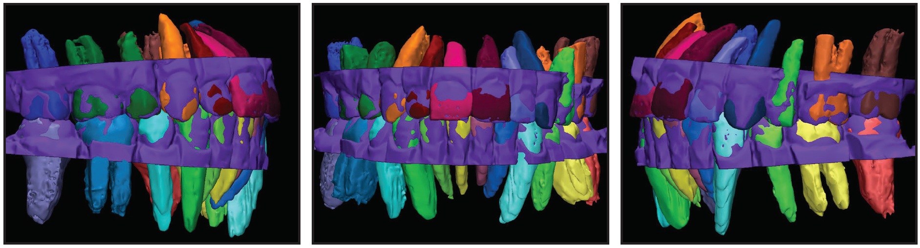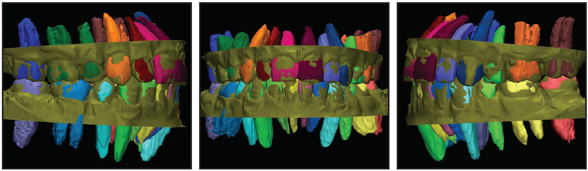 Even if the final setup is ultimately dictated by the crown positions, this procedure will help identify errors in crown angulation and inclination that might have been missed during initial physical inspection. As our case demonstrates, the ability to visualize the roots allows the clinician to improve the ideal 3D setup. Of course, the orthodontist may decide to leave the roots uncorrected in certain patients to accommodate crown positions, especially in cases involving root dilacerations or abnormal crown shapes.