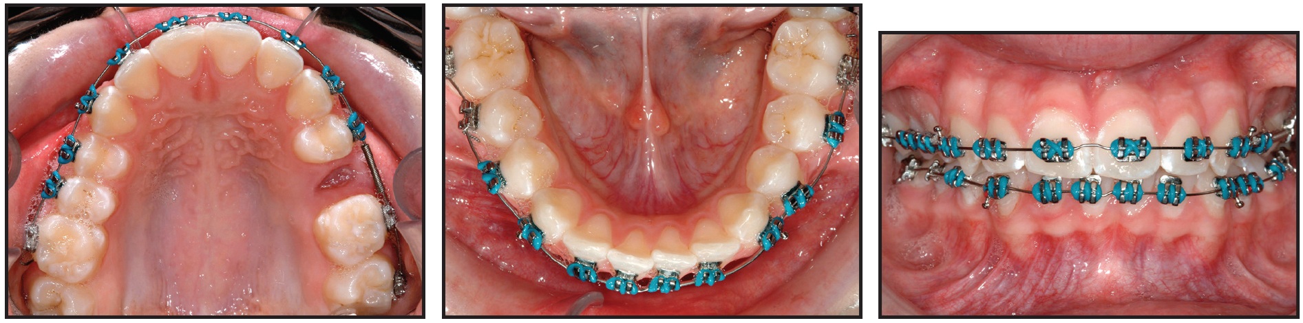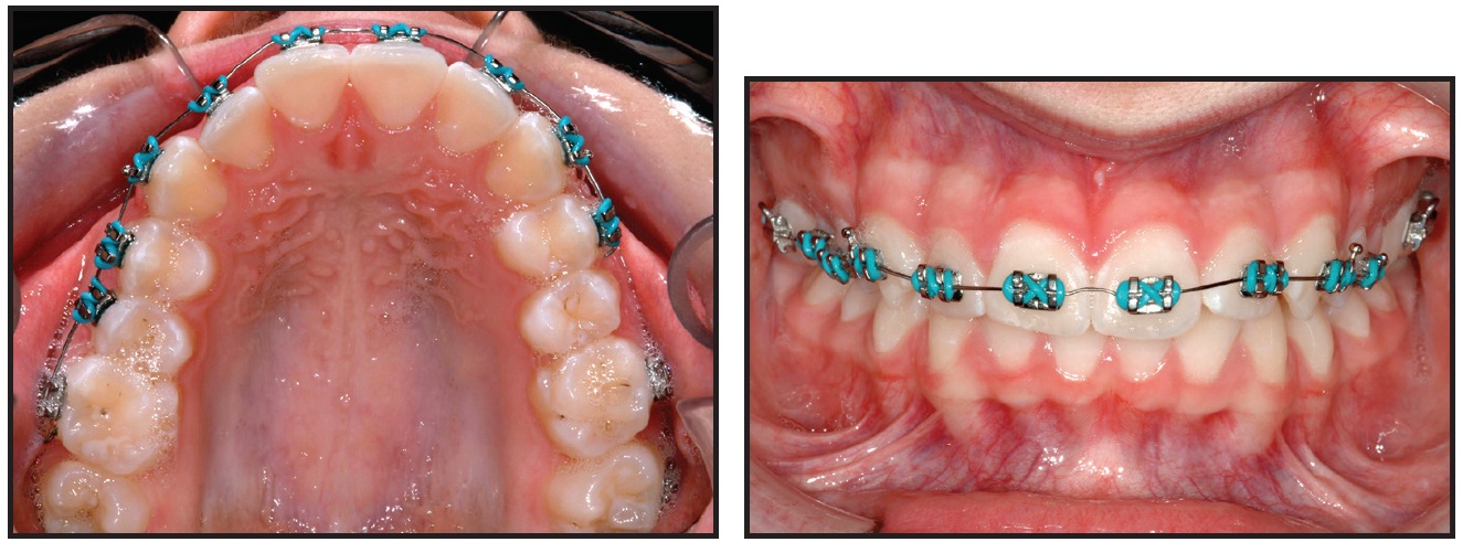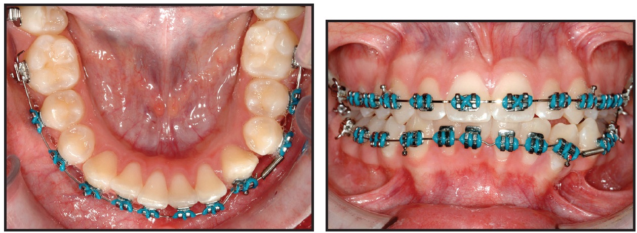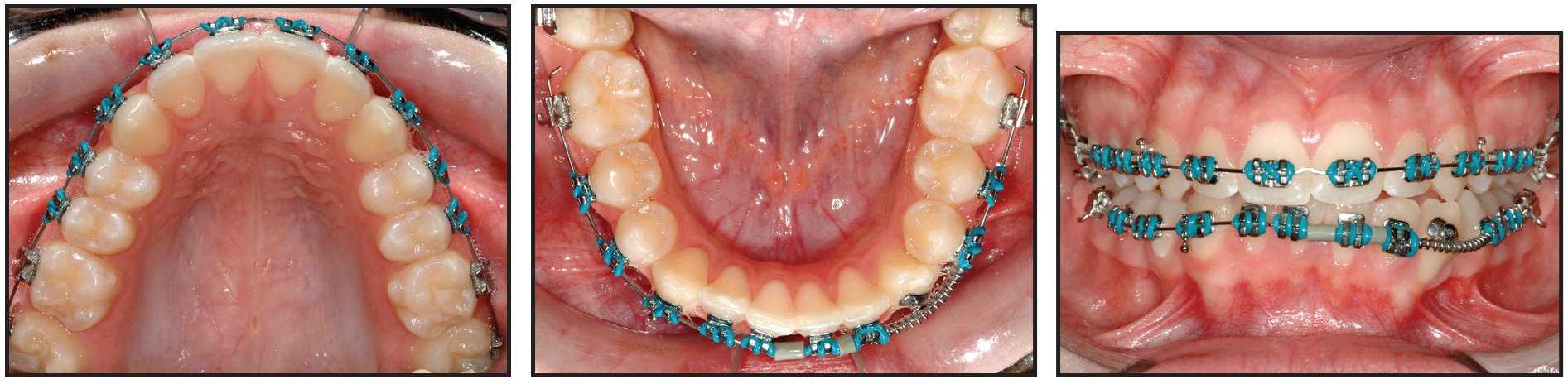 A 14-year-old female living in Charleston, South Carolina, presented to an office in suburban Atlanta for orthodontic treatment. Clinical examination showed inadequate space for the upper and lower left canines, mild lower-incisor malalignment, and relative extrusion of the upper central incisors (Fig. 2).