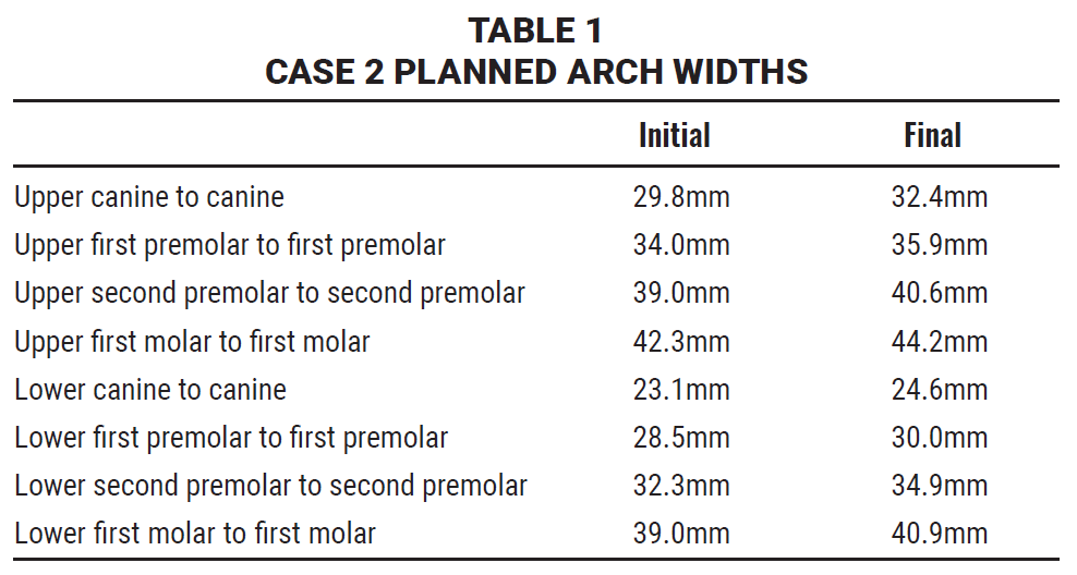 The Pendulum appliance required the addition of a jackscrew due to the geometry of distolingual forces produced by its sweep springs. If there were no active transverse expansion, the molars would be swept into crossbite. In contrast, when distalizing forces are simply applied along the diverging maxillary alveolar trough, they are, in effect, expansive in nature. For example, the Distal Jet produces 3-5mm of intermolar expansion when the appliance is designed to apply forces parallel to the archform.33,36 Although it would be unreasonable to expect this device to resolve a substantial transverse discrepancy, the appliance can be further expanded during fabrication, or a jackscrew can be added if necessary.36