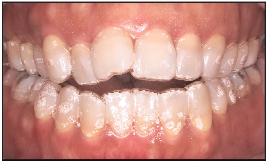 Each Invisalign tray is programmed to move the teeth .25mm. If the teeth did not move as expected when the aligners were replaced every three days, we would have seen gaps between the aligners and teeth. This did not occur, and the patient did not report any pain or excessive pressure when changing aligners more frequently, indicating a good fit (Fig. 7).