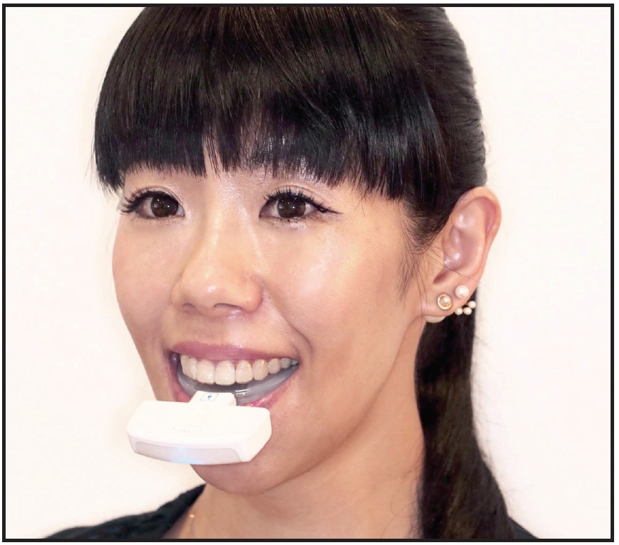 An OrthoPulse device was delivered, and the patient was instructed to change aligners every three days. The OrthoPulse was to be worn 10 minutes per day (five minutes per arch), with the patient biting down lightly on the device (Fig. 5). Even if the patient did not report to the practice, her compliance was monitored through the use of an accompanying app (Fig. 6).