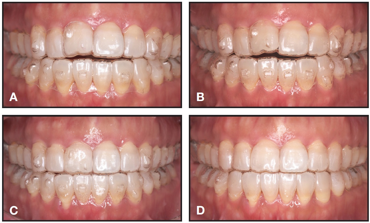 Fig. 7 A. After 51 days of treatment. B. After 109 days of treatment. C. After 139 days of treatment. D. Final overcorrection aligners, after 157 days of treatment.