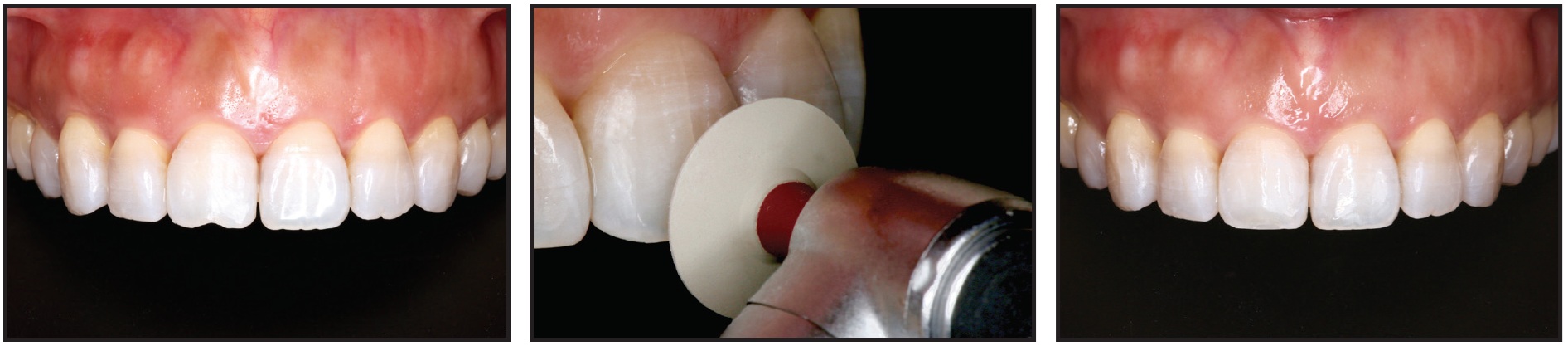 Total treatment time was six months (Fig. 8). The upper anterior teeth were then recontoured using OptraPol*** (Fig. 9).