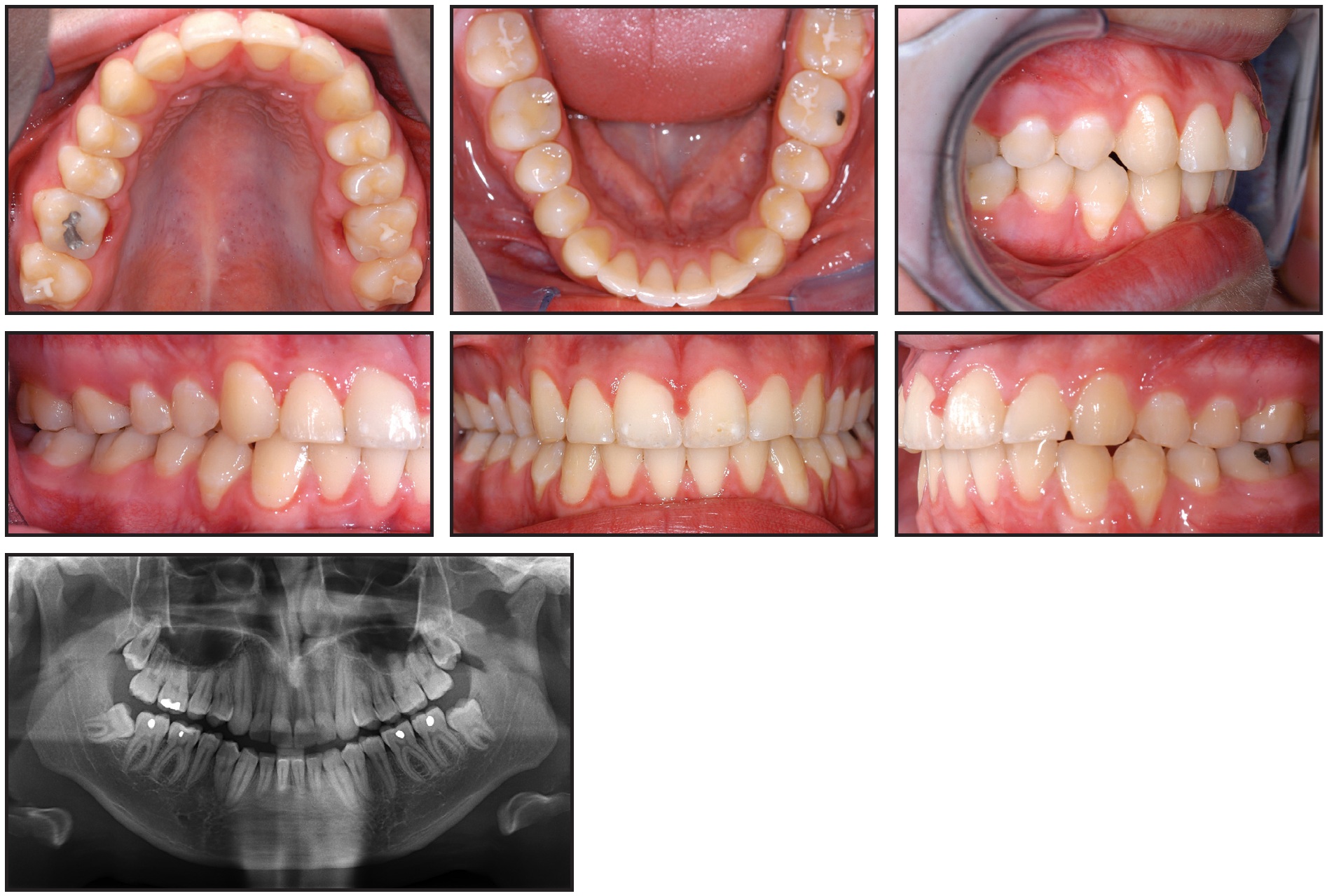An 18-year-old female had previously undergone orthodontic treatment involving the extraction of four first premolars due to crowding in both arches (Fig. 6).