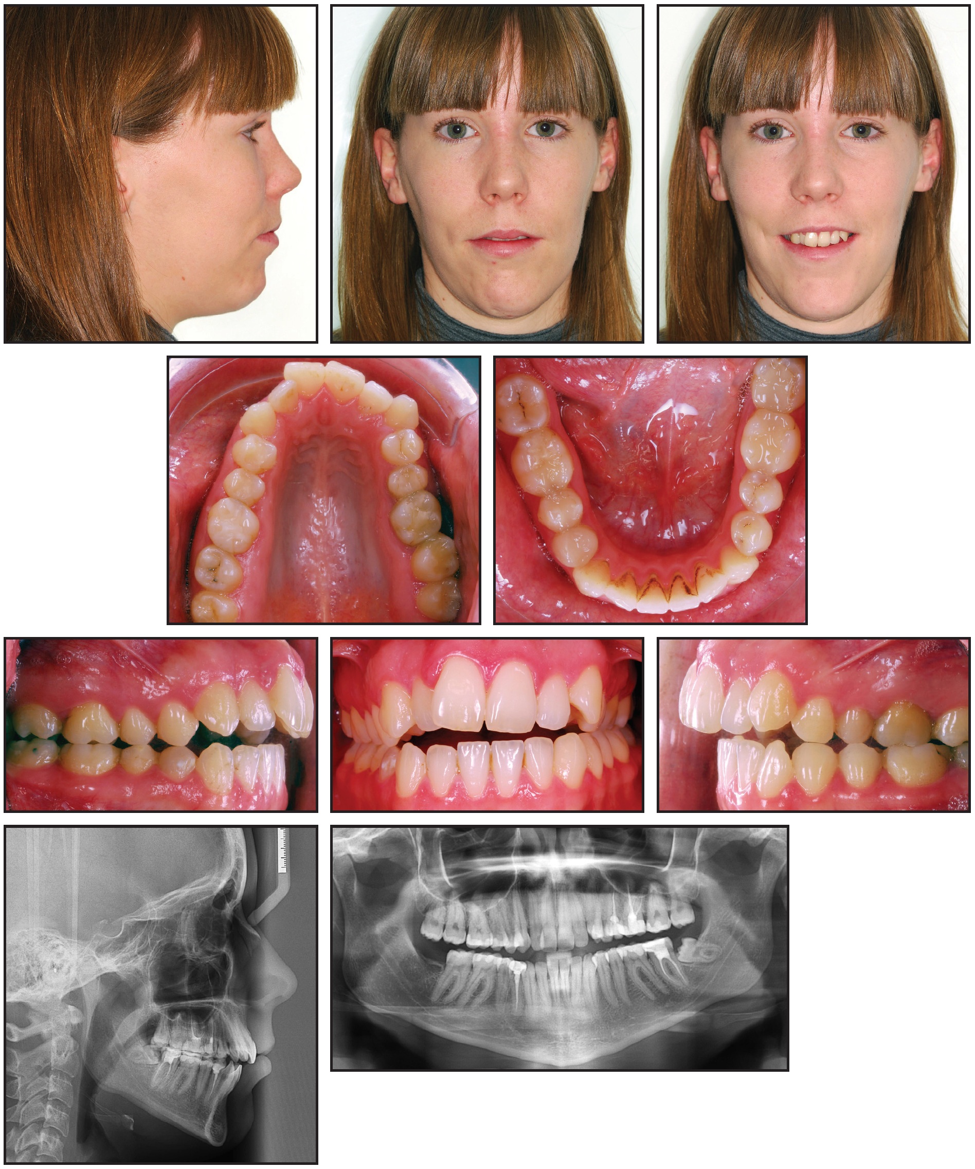 A 25-year-old female patient presented with a skeletal Class II pattern, Class II molar and canine relationships (complete on the left and edge-to-edge on the right), excessive overjet, and a narrow maxilla (Fig. 1).