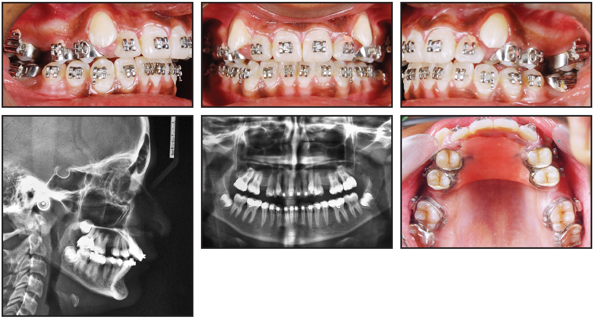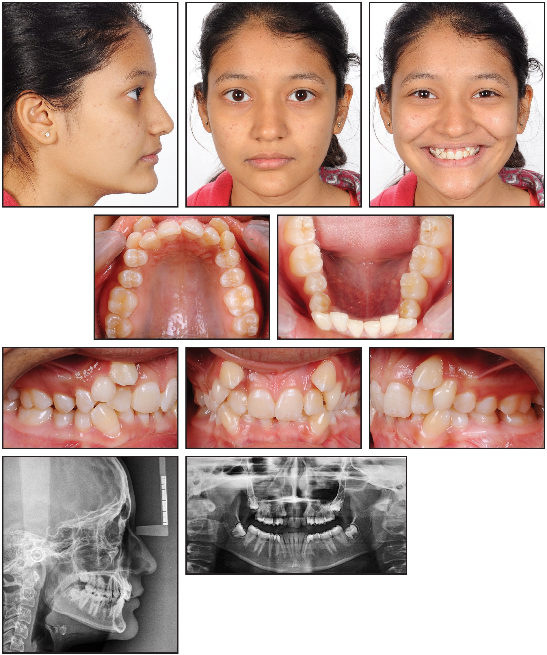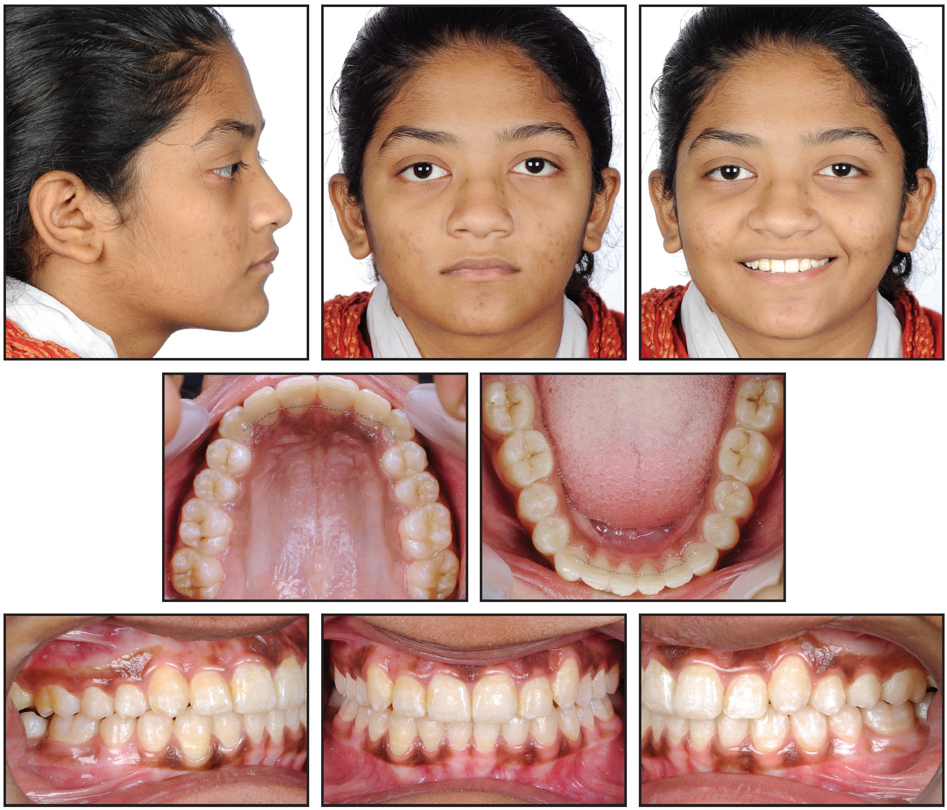A 13-year-old female presented with highly placed, blocked-out upper canines, severe crowding in the upper arch and mild crowding in the lower, competent lips, a non-consonant smile arc, and a straight soft-tissue profile (Fig. 6).