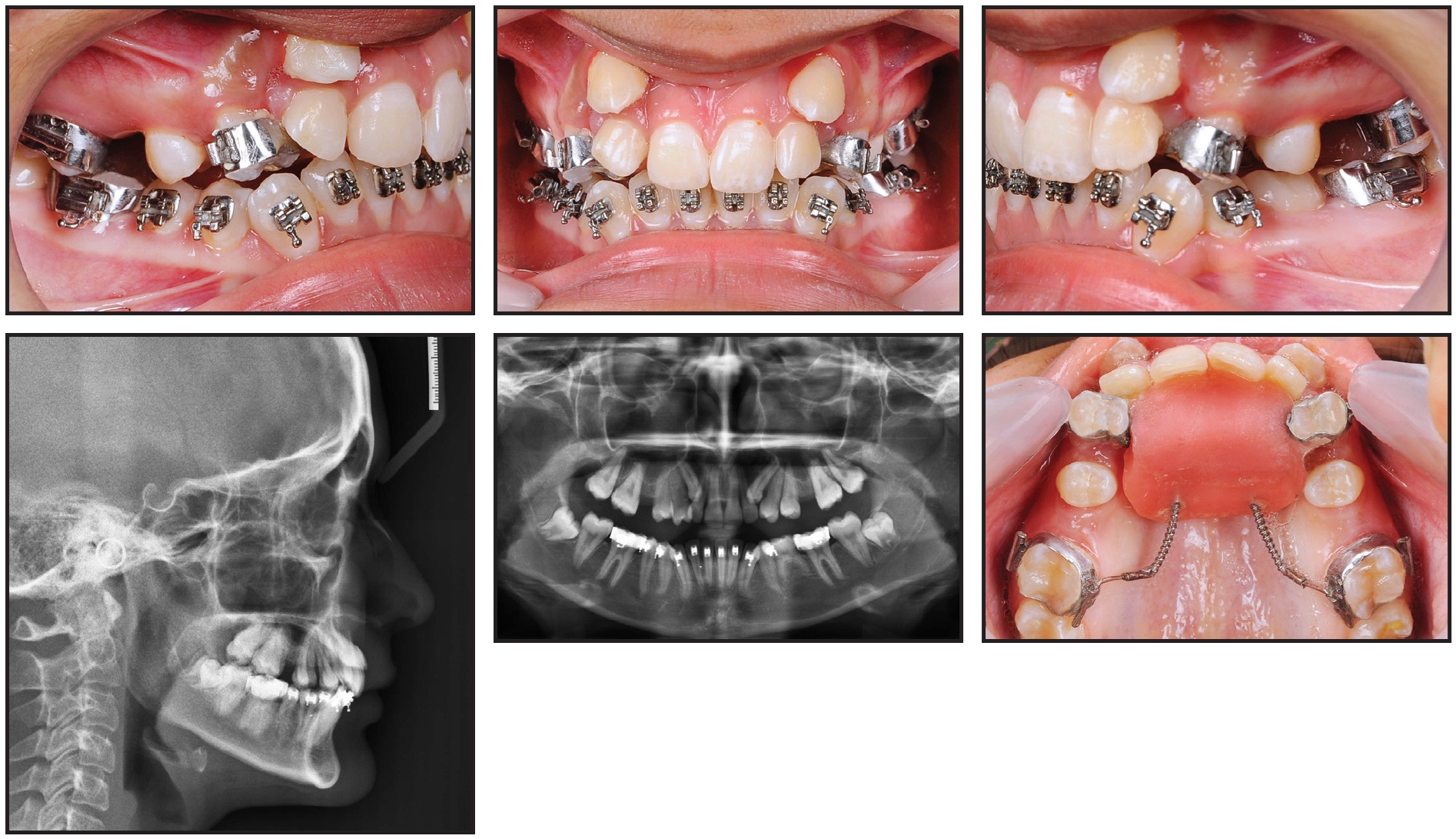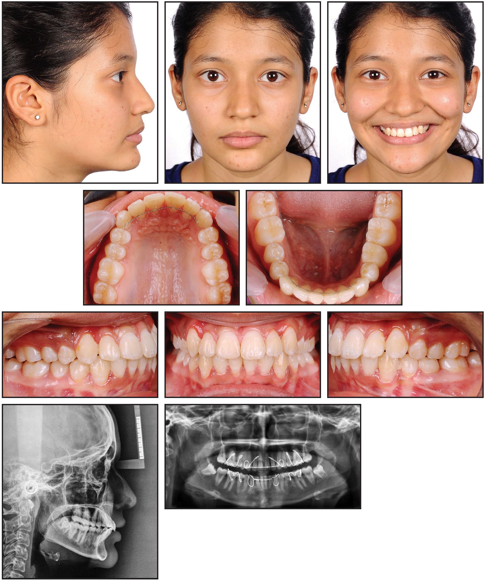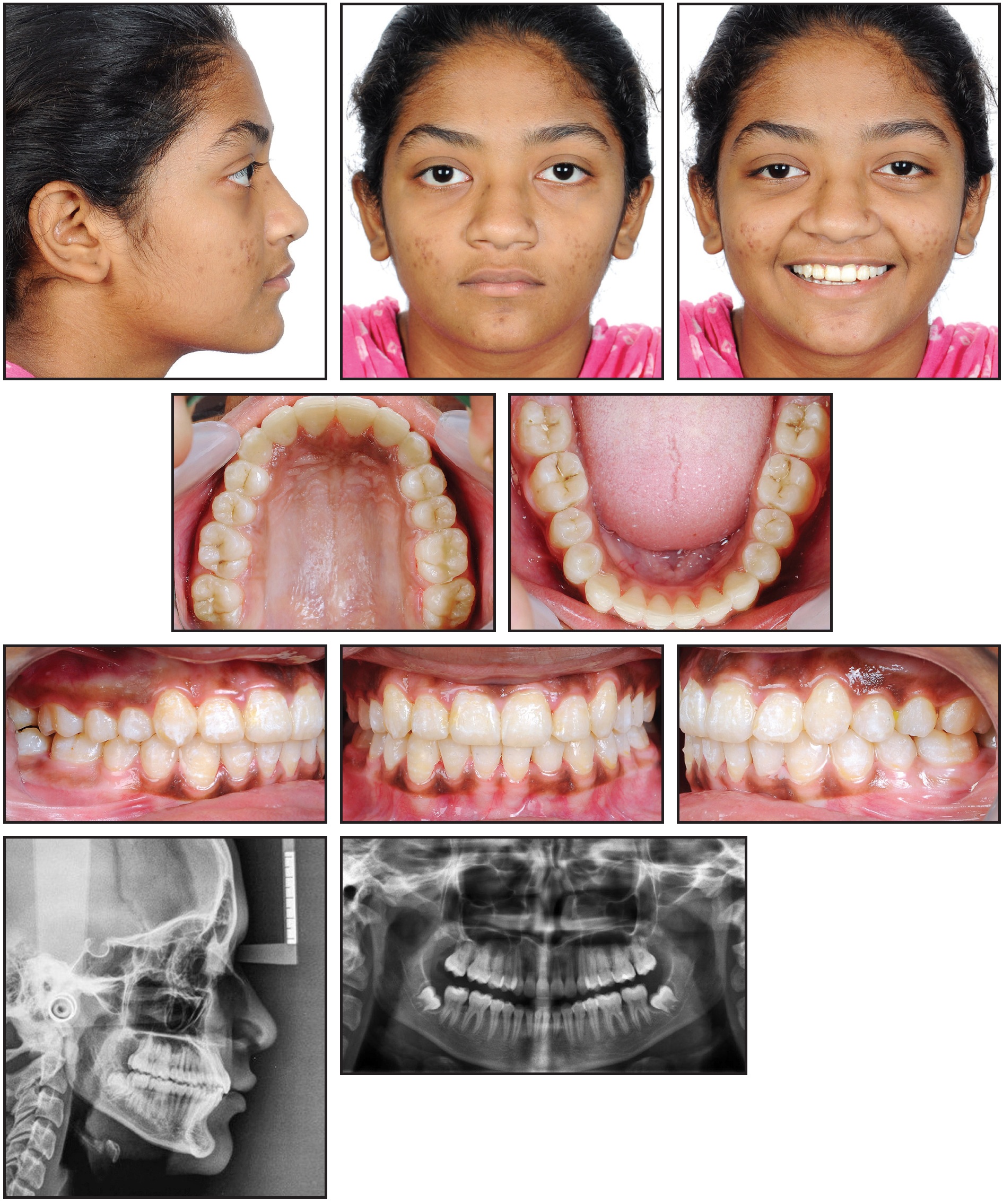 A 13-year-old female presented with highly placed, blocked-out upper canines, severe crowding in the upper arch and mild crowding in the lower, competent lips, a non-consonant smile arc, and a straight soft-tissue profile (Fig. 6).