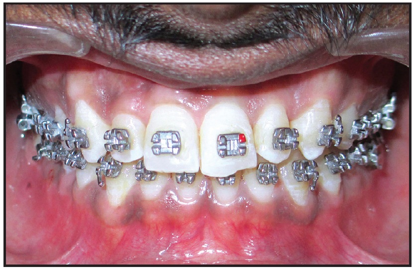 Fig. 2 After five months of leveling with lower .022" × .028" MBT* appliance and nickel titanium archwires, 2 × 4 appliance placed in upper arch.
