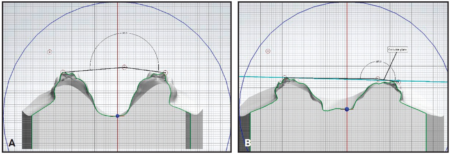 Fig. 9 Case 2. Molar angulation before (A) and after (B) expansion.