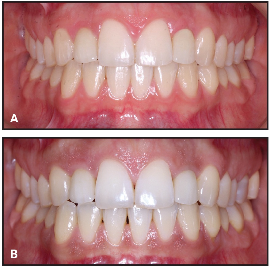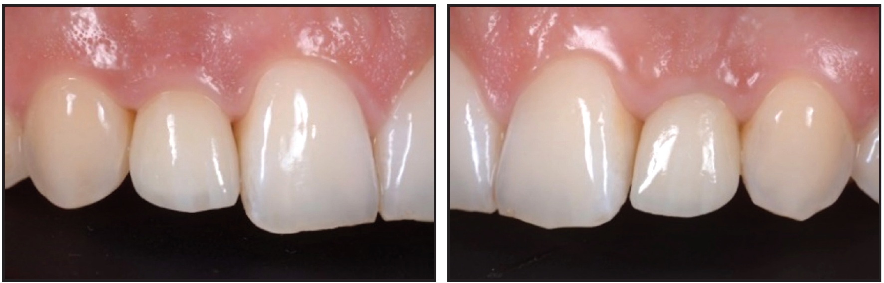 Orthodontic space closure can produce excellent long-term treatment results when performed with optimal torque control, differential extrusion of the canines and intrusion of the first premolars, bleaching and subtractive recontouring of the canine cusps and buccal curvature, and additive reshaping of the six anterior teeth using either composite or ceramic veneers.3-9 Space closure allows the entire treatment to be finished within a relatively short time after orthodontic therapy, and the resulting dentition can adapt to continuous facial changes over the patient’s life.10