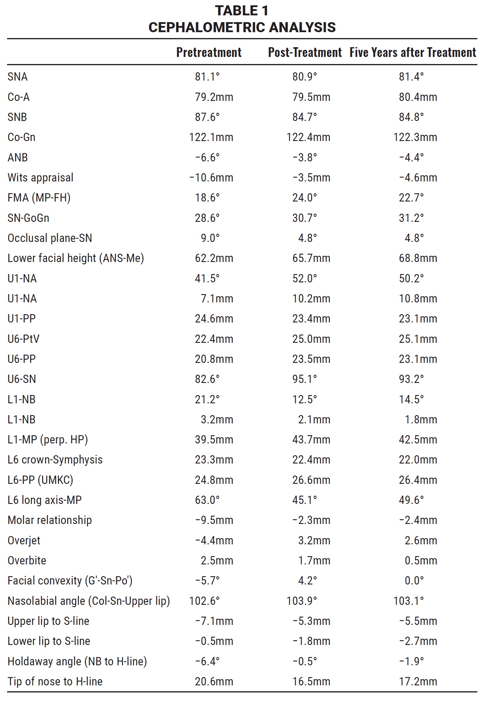 Dentoalveolar relationships improved the most during treatment and remained stable over the next five years (Fig. 3).