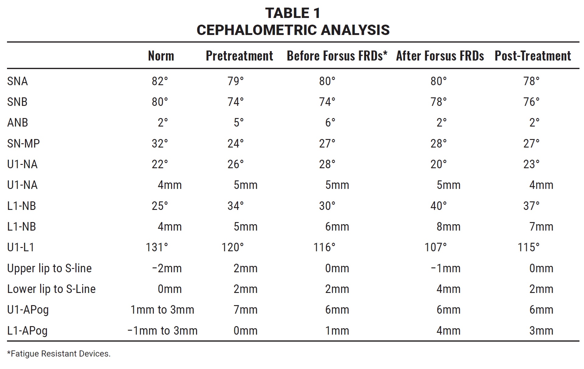 After another four months of applying palatal root torque to the upper right canine ([img=4]Fig. 4[/img), a Forsus FRD was placed on each side, extending from the upper first molars to the distal aspects of the lower canines (Fig. 5).