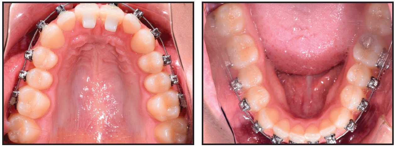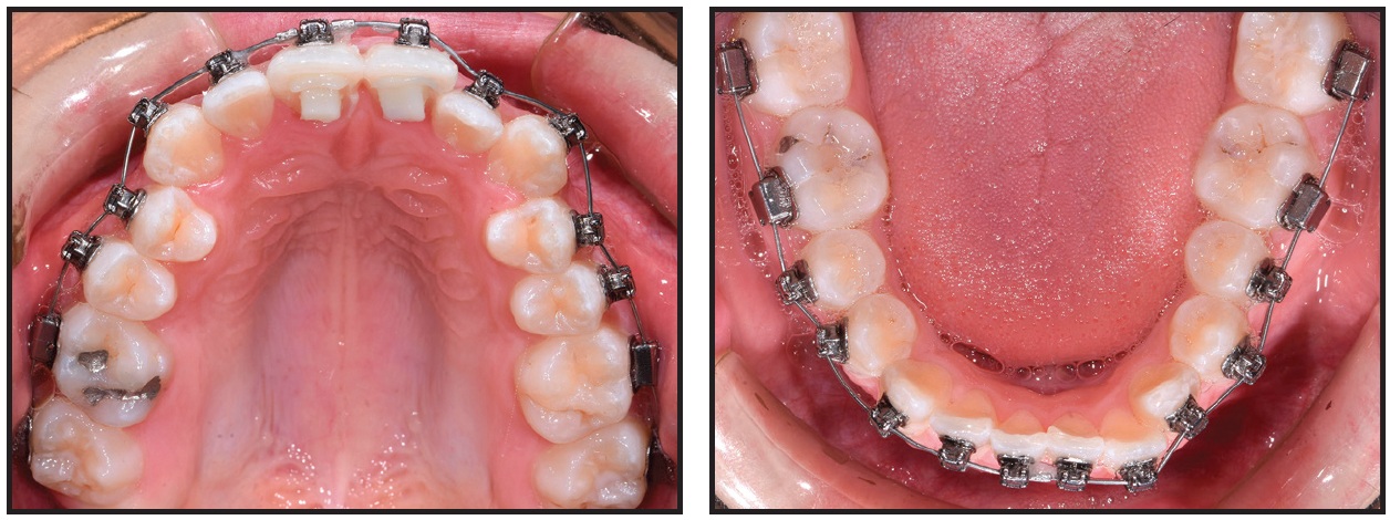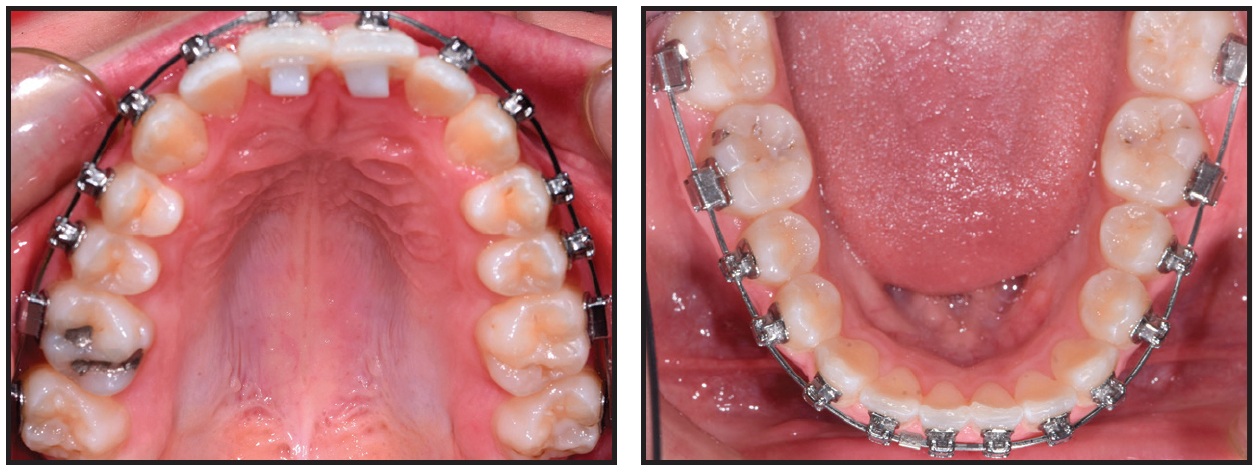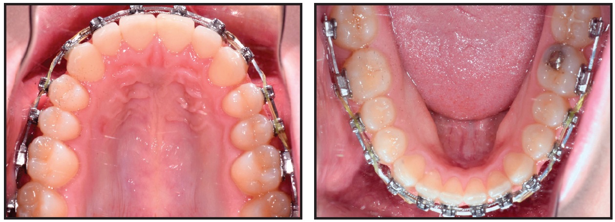 Fixed appliances were bonded to all teeth in both arches, and .016" SmartArch Copper NiTi wires were placed (Fig. 10). Anterior bite turbos were bonded as in Case 1.