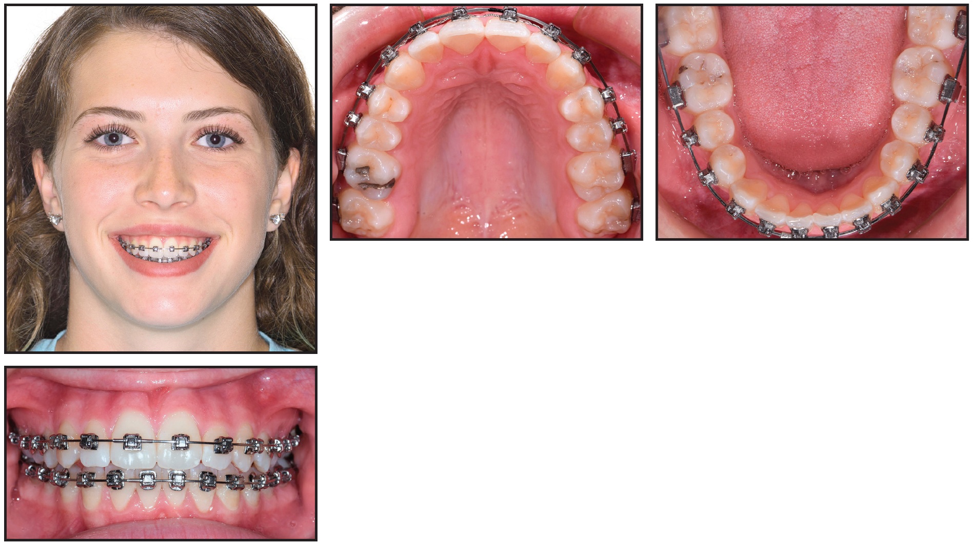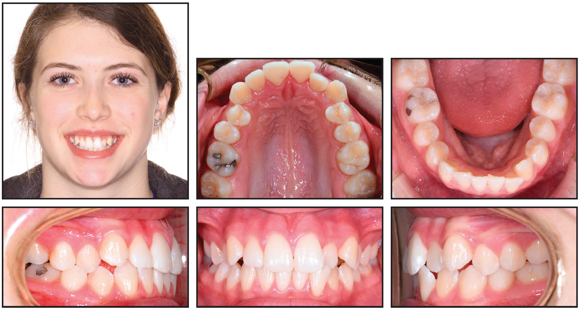A good facial profile and balance were noted, along with normal upper incisor positions and lingual tipping in the buccal segments. The molar and canine relationships were diagnosed as Class I on the left and one-fourth- to one-half-unit Class II on the right.