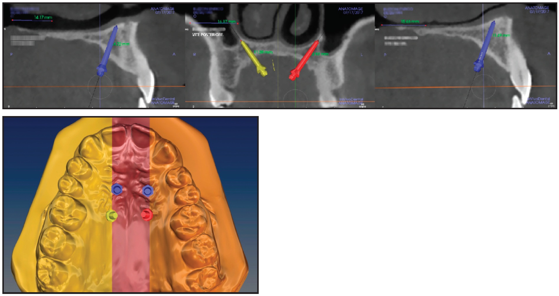 Fig. 3 Case 1. Virtual planning of miniscrew insertion sites based on Digital Imaging and Communication in Medicine (DICOM) and stereolithographic (STL) files.