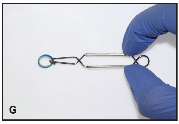 Our office is always running out of plastic orthodontic elastic placers. This beautifully illustrated Pearl teaches how to make one chairside in a pinch, using only .036" stainless steel wire and plastic tubing.