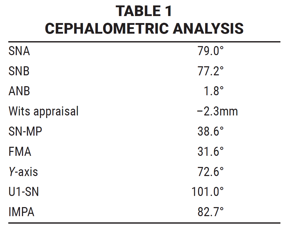 There were statistically significant changes from T1 to T3 in SNB (+1.13°), ANB (–1.67°), Wits appraisal (–3.25mm), convexity (–3.62°), mandibular length (CoGn = +3.59mm), overbite (–1.83mm), and overjet (–3.36mm). At both T2 and T3, there were no statistically significant changes in MP-SN, FMA, interincisal angle, or IMPA.