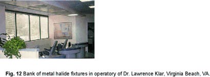 Fig. 12 Bank of metal halide fixtures in operatory of Dr. Lawrence Klar, Virginia Beach, VA.