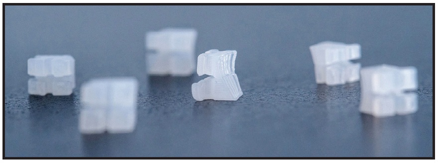Fig. 1 LightForce* three-dimensionally printed brackets shown on printer build plate prior to processing.