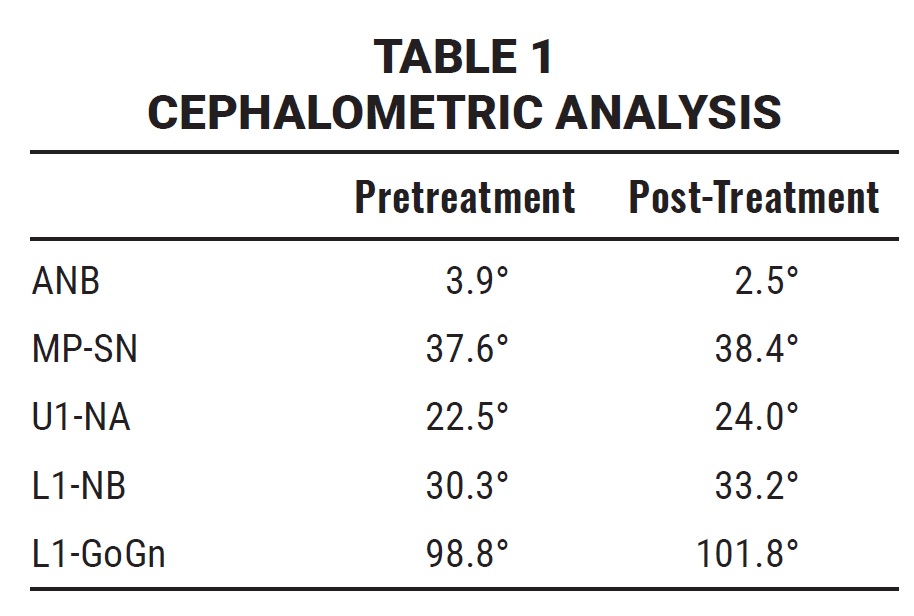 Cephalometric analysis confirmed good control of the dentition (Table 1). A slight proclination of the upper and lower incisors was attributable to the initial crowding and nonextraction treatment plan. A supernumerary tooth was detected in the lower left quadrant, and the patient was referred to an oral surgeon for evaluation. Notably, the clinical outcome was strongly correlated with the projected outcome in LightPlan (Fig. 15).