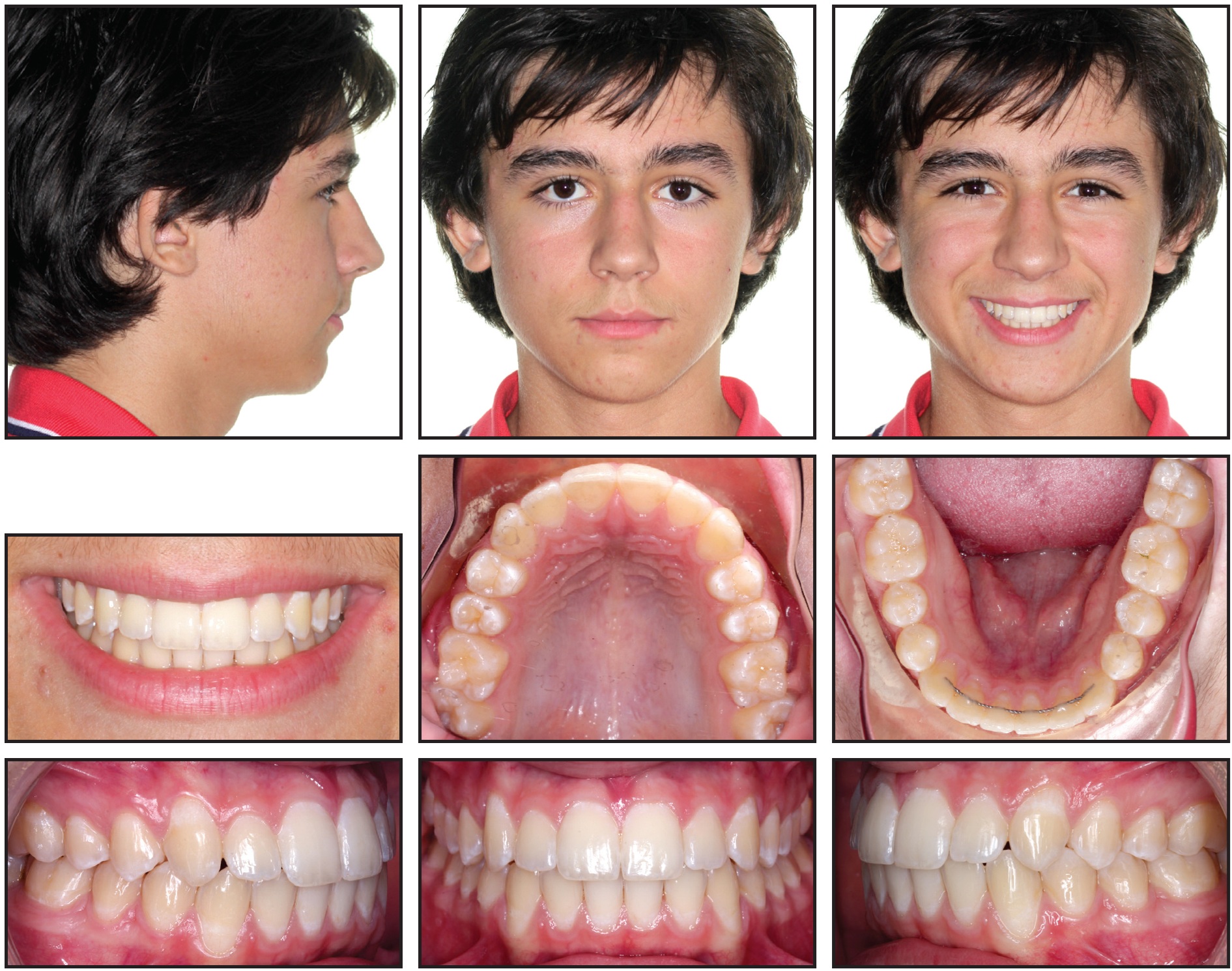 A satisfactory occlusal and esthetic result was achieved in precisely eight months of treatment, involving six scheduled visits and one wire-maintenance visit (Fig. 14).