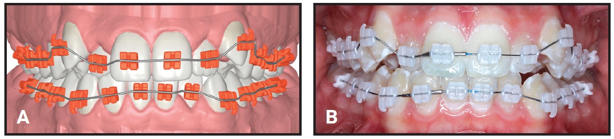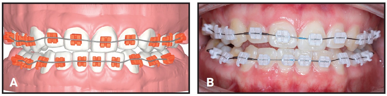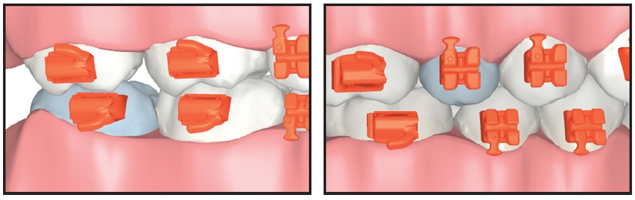 Effective alignment in the initial stage of treatment allows early placement of 3rd-order wires (typically square or rectangular nickel titanium) that will engage in the rectangular slots to activate the custom prescription. This, in turn, enables a smooth transition to the final working wires and an early start of active mechanics, such as space closure. Further clinical efficiency is gained through the reduction or elimination of traditional midtreatment activities, such as direct bonding of the second molars or manual bracket repositioning, that usually require additional visits and a significant amount of doctor time.
