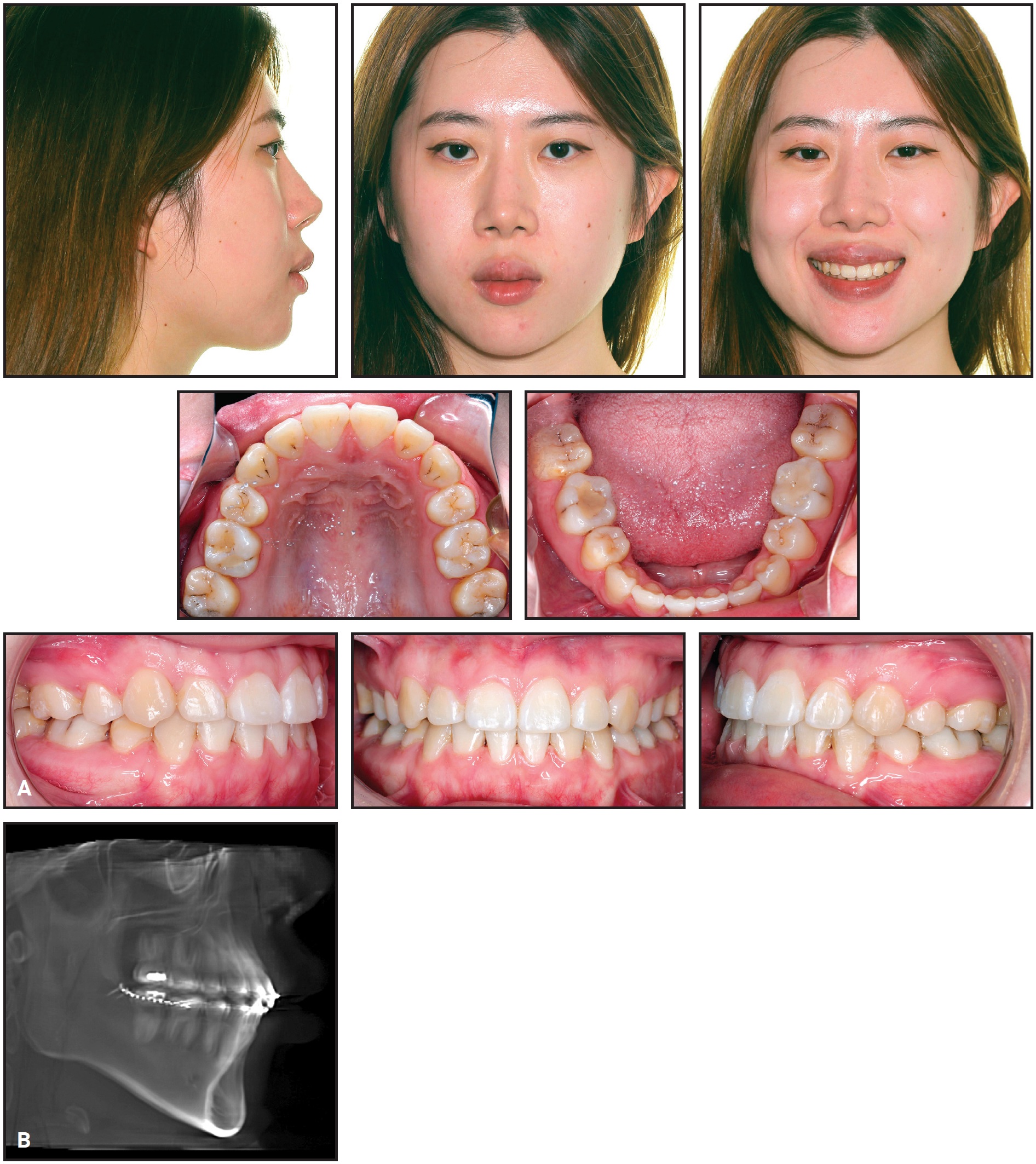 Fig. 17 A. Patient after 11 months and three weeks of treatment. B. CBCT taken just prior to debonding.
