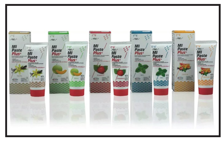 MI Paste Plus, a water-based topical tooth cream containing Recaldent (a milk derivative) and fluoride, aids in tooth remineralization and caries prevention, according to the company. MI Paste Plus is designed to provide extra protection against acid from bacteria in plaque and other internal and external acid sources. It may be used in the office or provided to the patient for at-home application.